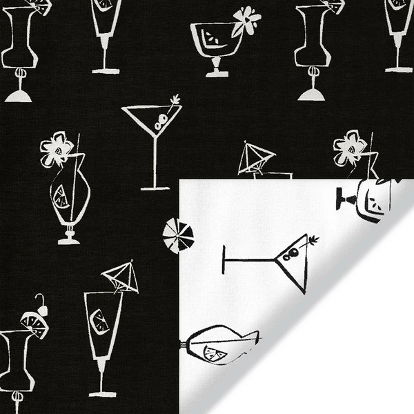 Bring a fun, festive spirit to your patio with Covington Outdoor Five O’Clock Somewhere upholstery fabric. Five O’Clock Somewhere Ivory/Ebony features a black design of various cocktails on a white background. Add this 100% polypropylene indoor/outdoor fabric to your patio or outdoor living space and you’ll be the hit of the next neighborhood barbecue! The fabric is also reversible, giving you another reason to love this quirky and beachy fabric.