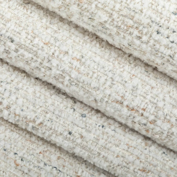 • Polyester indoor-only neutral upholstery fabric with flecks of color.