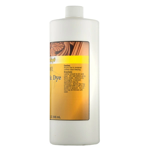 Whatever painting tools you have, Acrylic Dye for Leather will work for you! Use a paintbrush, wool dauber, sponge, cloth, sprayer or other application tool to create unique visual effects. This fast-drying acrylic paint is flexible and water-resistant, ensuring that it will adorn your leather pieces for the long haul.