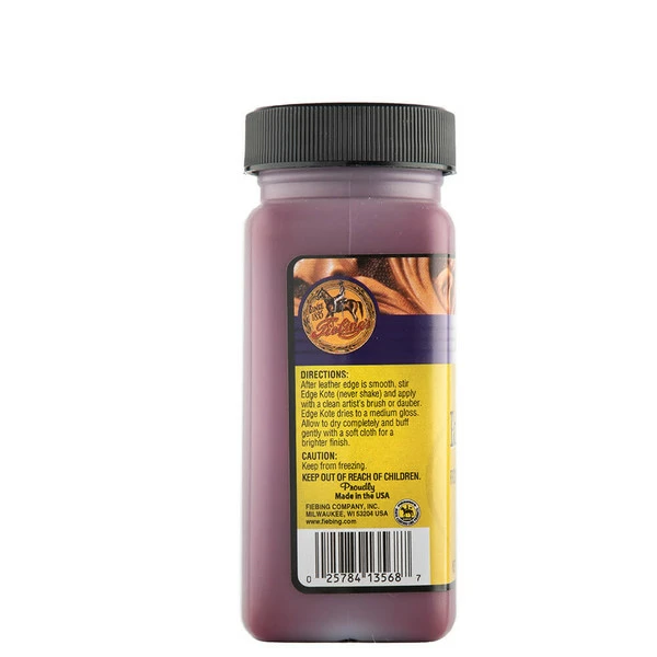For best results, use Edge Kote on natural leather. This product will not work on rough leathers or suede. Edge Kote dries to a semigloss finish, but can be buffed to a higher shine if desired. Allow to dry fully before buffing; drying times will be different in different environments. For a thinner, less vibrant color coating, dilute Edge Kote with water before applying.