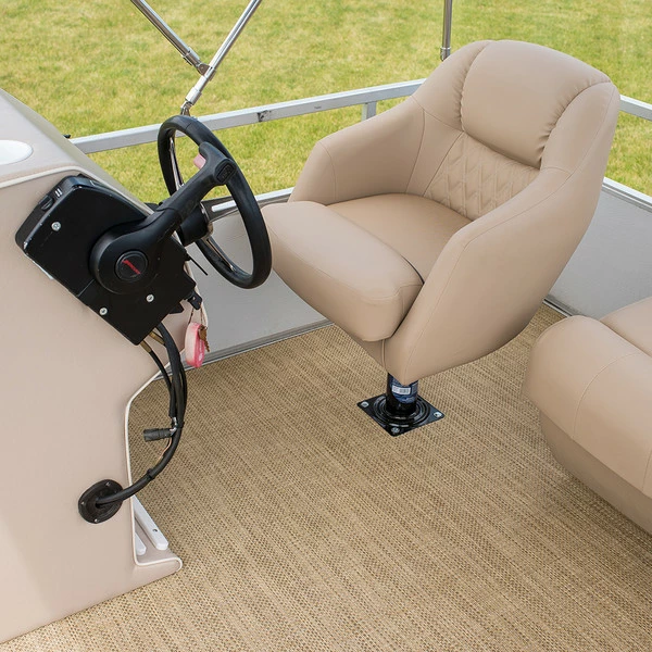 Infinity Luxury Woven Vinyl Flooring has a Compact Cushion (CC) backing that makes it ideal for area rugs, snap-down and glued-down installations. For snap-in mats, bind the edges of the vinyl flooring with a 1-1/4-inch binding and use snap fasteners to secure to the boat floor. We recommend using DOT® brand SnapRite® fasteners for strength and ease of installation. To use as boat deck flooring, Infinity Luxury Woven Vinyl can be glued to the deck using a solvent-free, latex resin adhesive that works with vinyl. Infinity recommends using AAT-390 Marine & Exterior Adhesive for glue-down applications. Edges don’t need to be bound when glued, because the flooring typically runs under built-in furniture or seating.