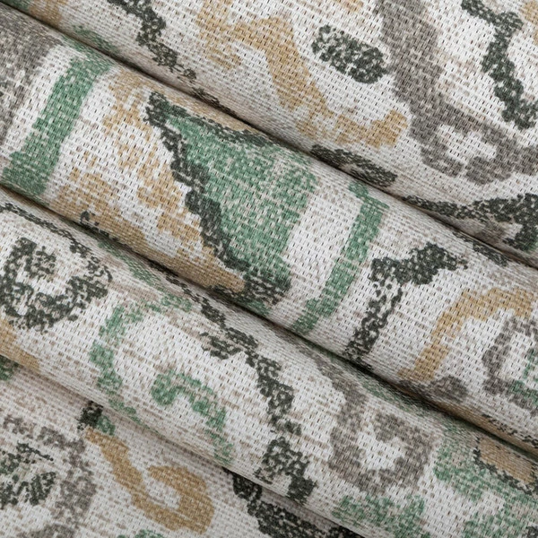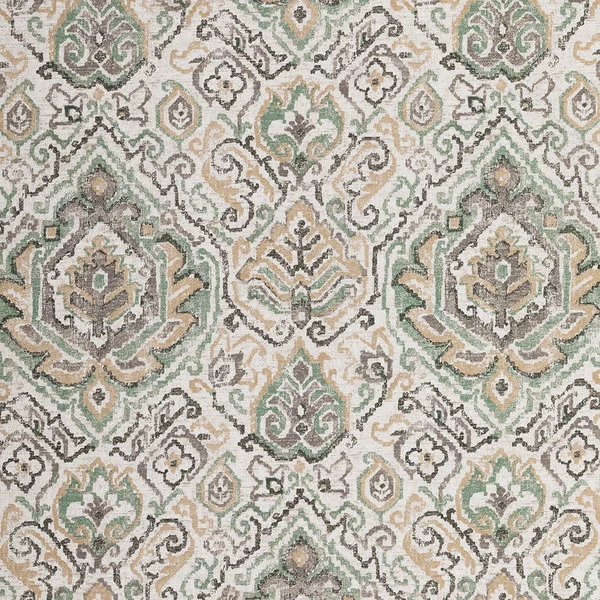 Magnolia Home Cathell Meadow is a beautiful indoor-only printed cotton upholstery fabric. Featuring muted green, gold and gray colors in a damask/ikat pattern, this bold fabric will liven up your living room. Pair this upholstery fabric with coordinating fabrics in the Magnolia collection for a cohesive look throughout your home.