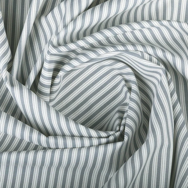 Magnolia Home Polo Stripe Slate is a 100% cotton indoor upholstery fabric. It features alternating thick and thin stripes in gray and white that will add a touch of understated elegance to upholstery, cushions, pillows, window treatments and more. Slate is highly abrasion-resistant, making it perfect for use in high-traffic areas. Covington home décor fabrics are made from high-quality materials, so they stand up to wear and bring lasting beauty to your home.