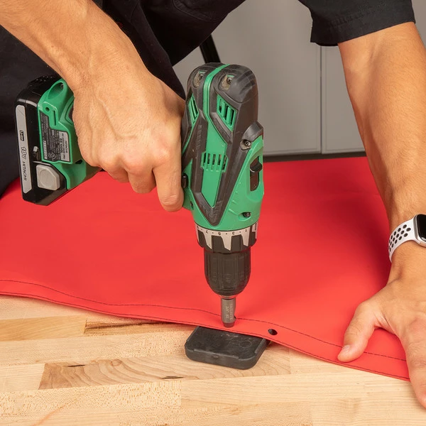 To use, secure this product in the drill chuck, place a cutting board behind the fabric on a hard, flat surface and firmly push the drill against the fabric to cut a hole. This is the best hole cutter system available today that allows for easy, portable hole cutting without the use of a heavy mallet! Standard household drill is not included.