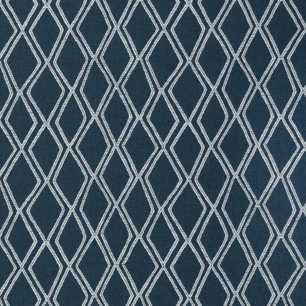 Sunbrella® Voyage Indigo is a 100% acrylic performance fabric. It features a geometric pattern of white-outlined diamonds on a navy background that brings subtle sophistication to whatever project it’s used for.