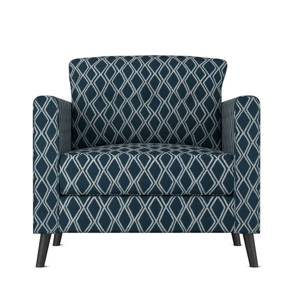 - Geometric pattern of white-outlined diamonds on a navy background.