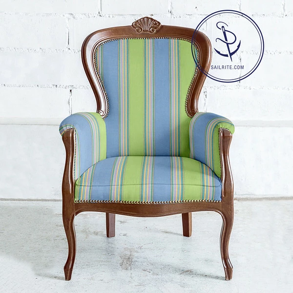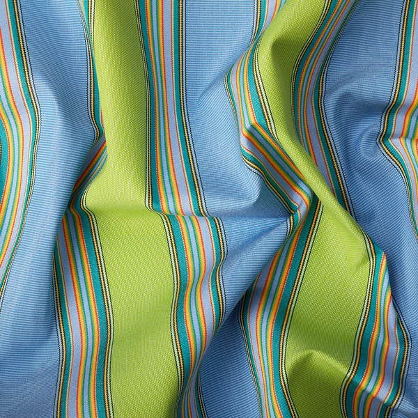 Bring the performance of Sunbrella® inside with Sunbrella Upholstery Fabrics! Bravada Fabric is a solution-dyed furniture fabric from the Sunbrella Upholstery Collection by Glen Raven. Featuring bold and bright stripes of varying widths, Bravada is woven from 100% solution-dyed acrylic yarns with a soft and supple hand. This comfortable, beautiful fabric makes the dining or living room a worry-free space for families and pets. It’s amazingly easy to maintain, and most spills can be cleaned with mild soap and water. With this kind of durability, great warranty and a wide variety of styles, what’s not to love?