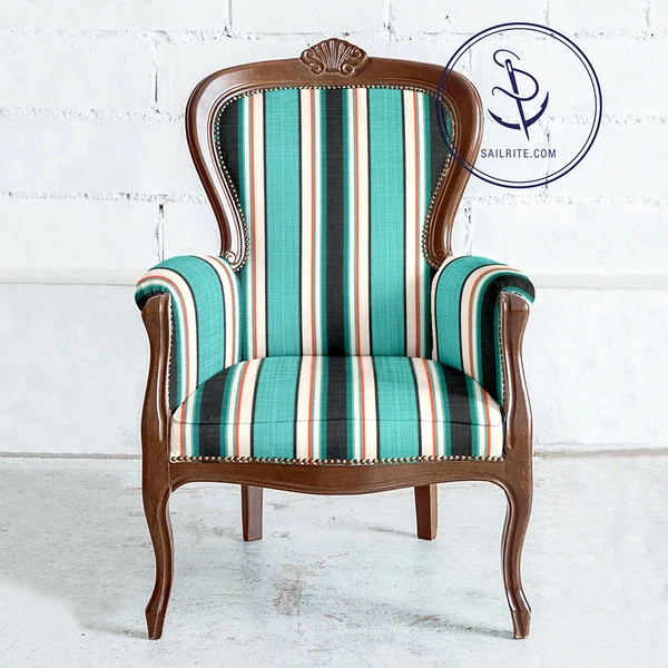Bring the performance of Sunbrella® inside with Sunbrella Upholstery Fabrics! Token Fabric is a solution-dyed furniture fabric from the Sunbrella Upholstery Collection by Glen Raven. Featuring stripes flowing up the roll in a bright color palette, Token is woven from 100% solution-dyed acrylic yarns with a soft and supple hand. This comfortable, beautiful fabric makes the dining or living room a worry-free space for families and pets. It’s amazingly easy to maintain, and most spills can be cleaned with mild soap and water. With this kind of durability, and great warranty, and a wide variety of styles, what’s not to love?