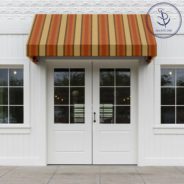 Sunbrella® Awning Stripe 4857-0000 Colonnade Redwood Fabric is a solution-dyed acrylic fabric from Glen Raven’s Sunbrella Awning Stripes collection. This fabric features orange-to-red ombre stripes nestled between neutral beige stripes, all flowing up the roll. The popularity of Sunbrella stems from its fantastic color options, high resistance to fading and long lifespan. Sunbrella is a soft, breathable, solution-dyed acrylic that is UV, water and mildew resistant and does not noticeably shrink or stretch. Sailrite is proud to carry the best in solution dyed acrylic outdoor fabric!