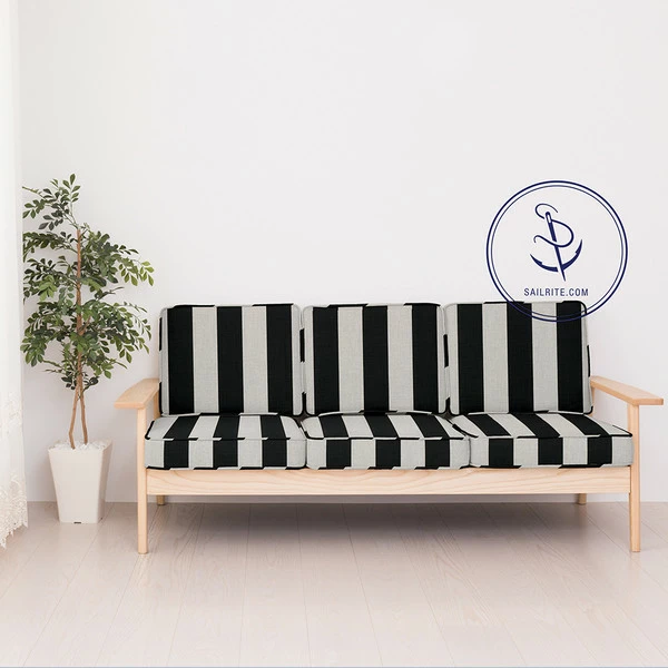 Sunbrella® Awning Stripe is a solution-dyed acrylic material from Glen Raven’s Sunbrella Awning Stripes collection. This pattern features broad stripes flowing up the roll in wide alternating bands of black and white. The popularity of Sunbrella stems from its fantastic color options, high resistance to fading and long lifespan. Sunbrella is a soft, breathable, solution-dyed acrylic that is UV, water and mildew resistant and does not noticeably shrink or stretch. Sailrite is proud to carry the best in solution-dyed acrylic outdoor fabric!